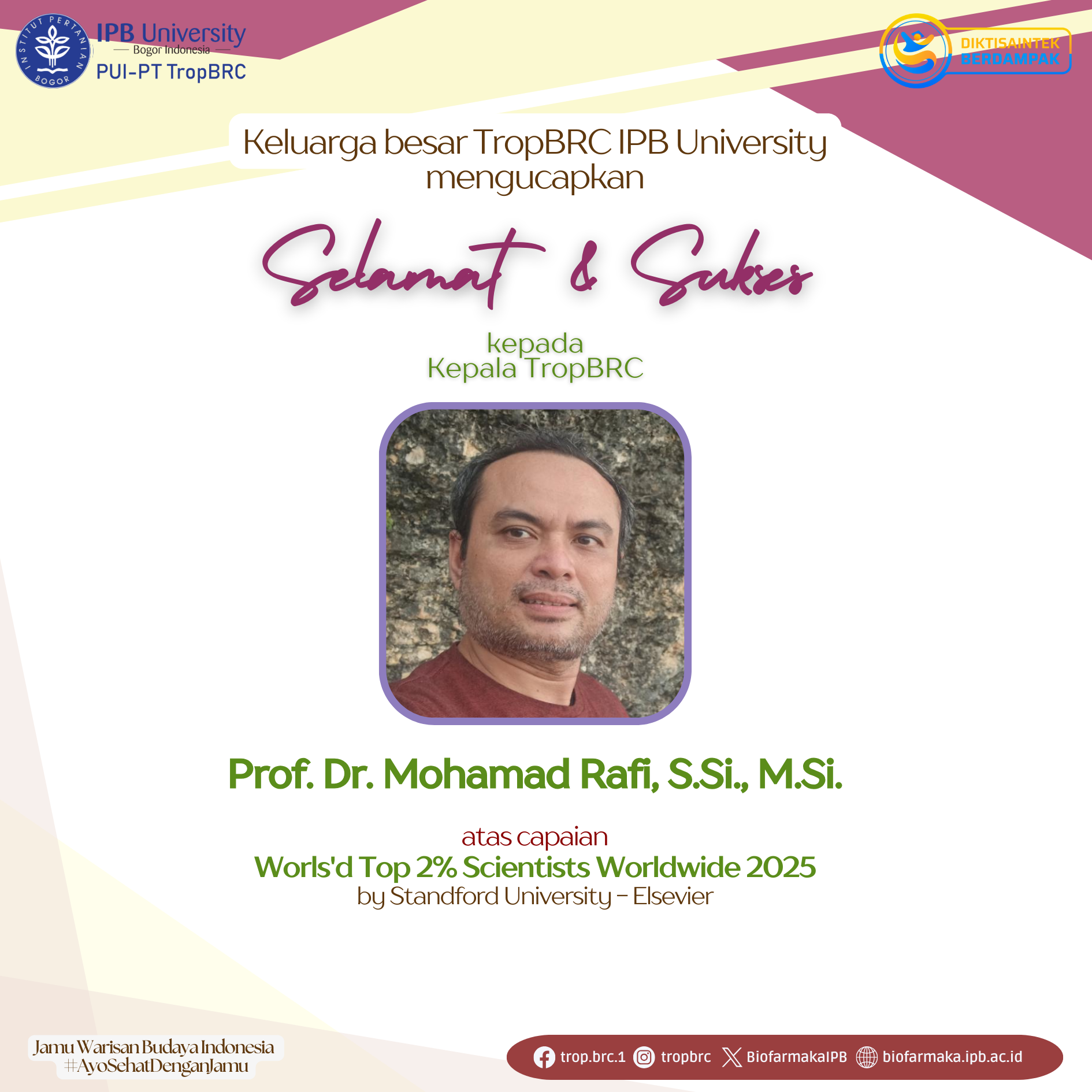 The big family of TropBRC IPB University extends our congratulations and best wishes to the Head of TropBRC, Prof. Dr. Mohamad Rafi, S.Si., M.Si., for being recognized among the World’s Top 2% Scientists Worldwide 2025 by Stanford University–Elsevier.