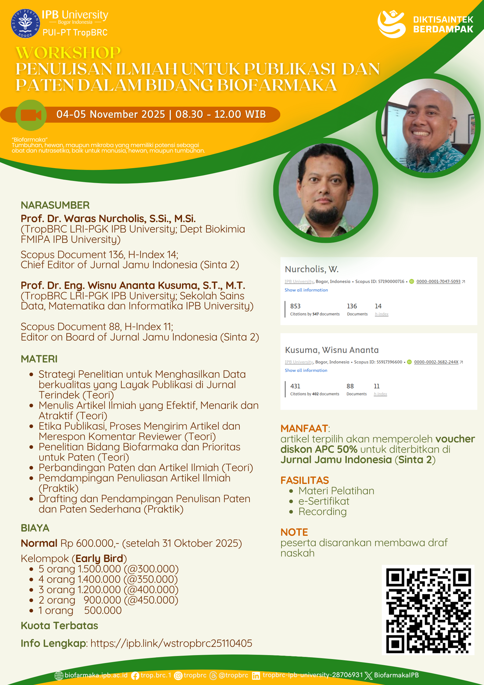 (Tropical Biopharmaca Research Center – LRI PGK IPB University; School of Data Science, Mathematics, and Informatics, IPB University)