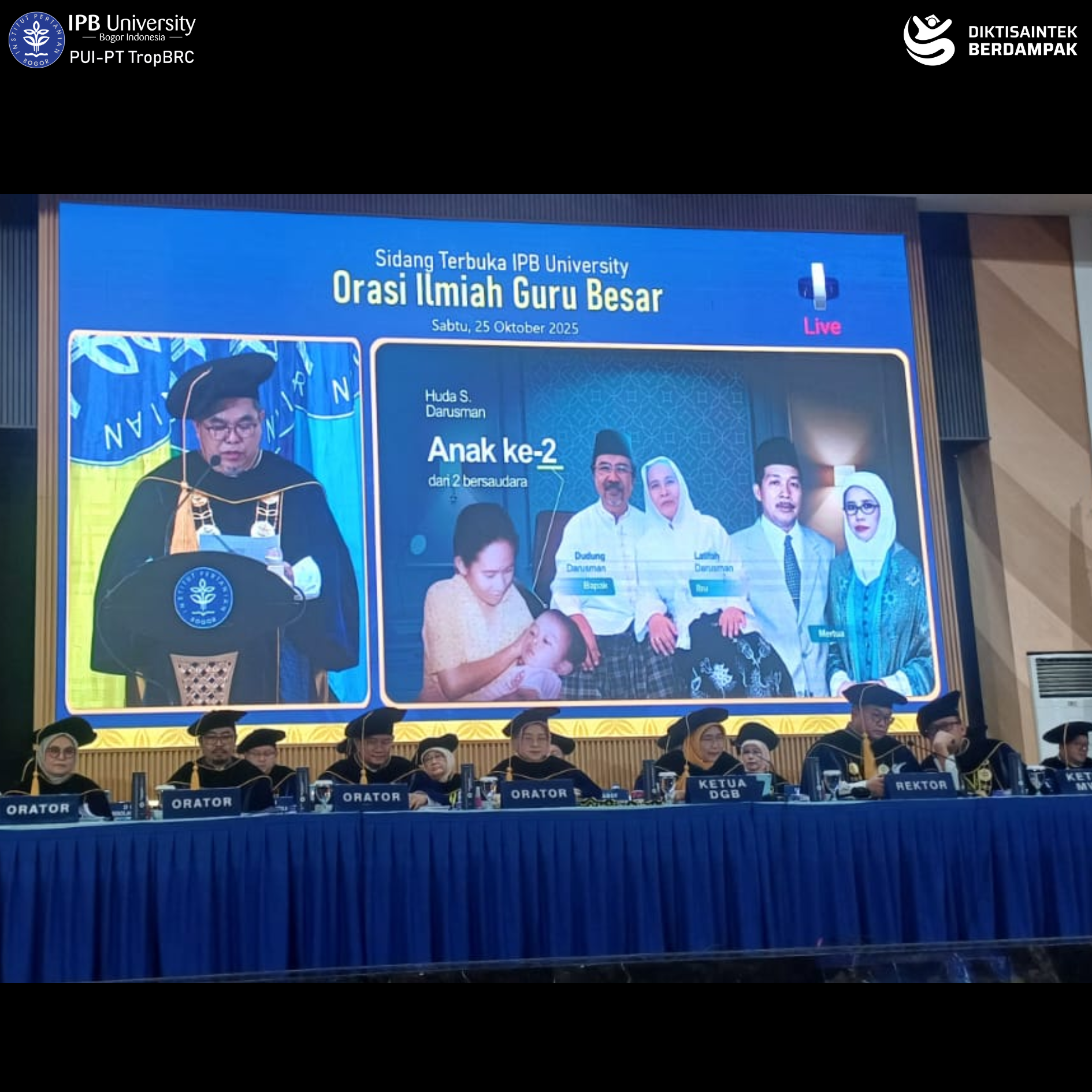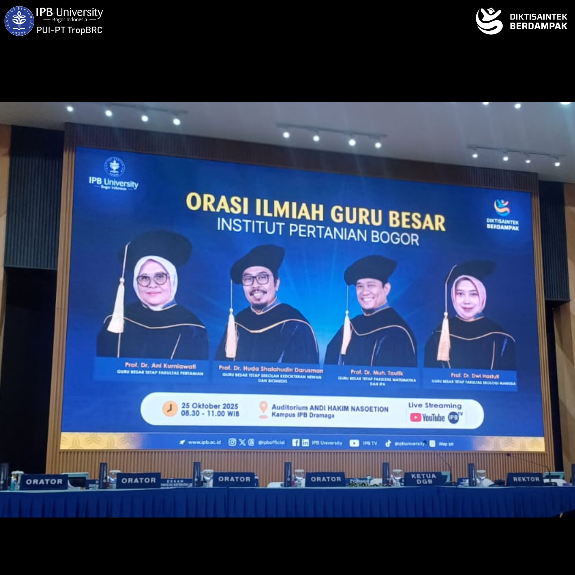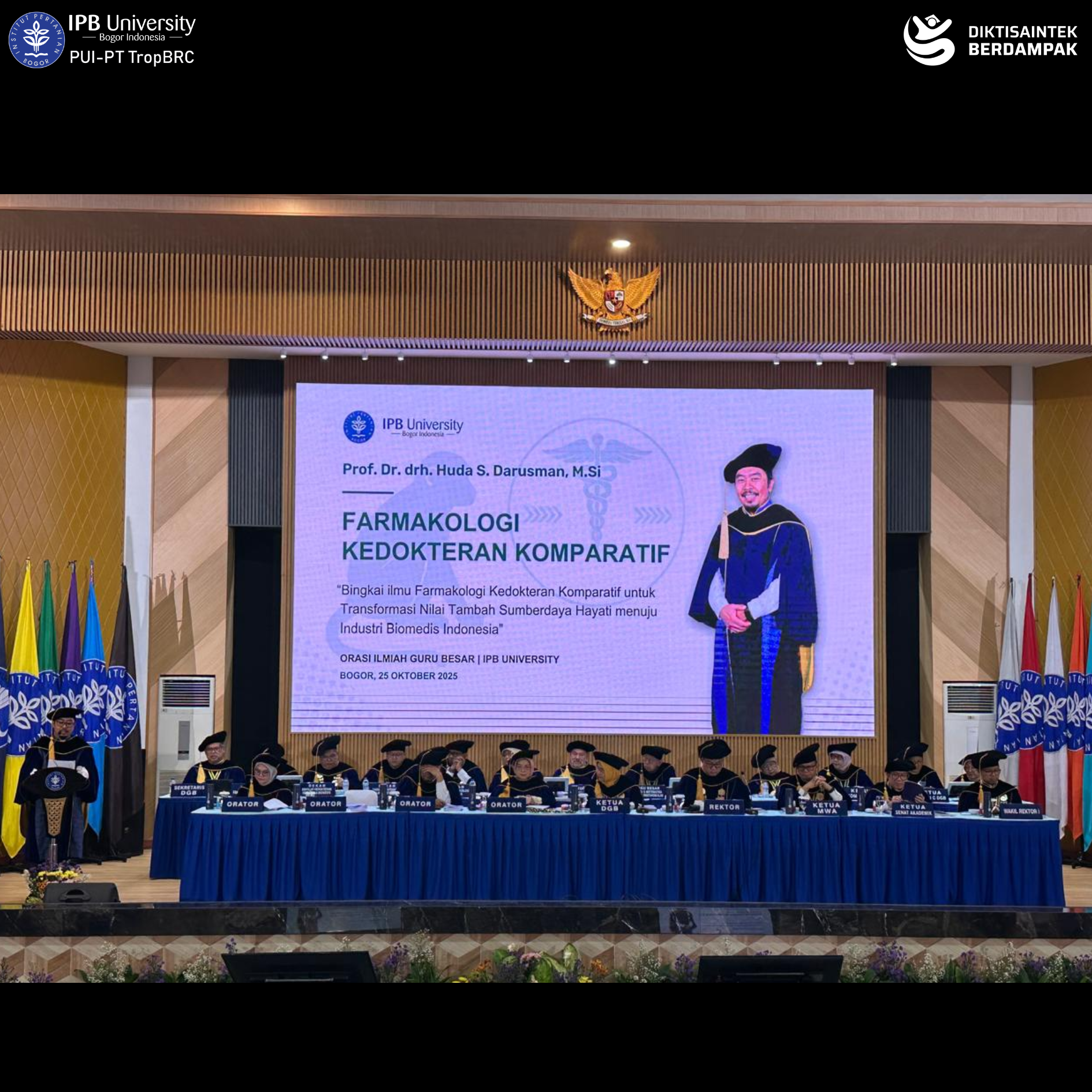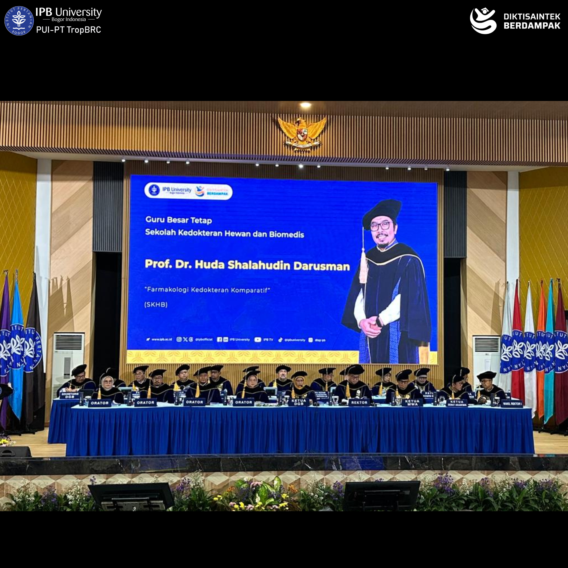 The Tropical Biopharmaca Research Center (TropBRC), LRI-PGK IPB University, extends its warmest congratulations to Prof. Dr. drh. Huda Shalahudin Darusman, M.Si., on his inauguration as a Permanent Professor at the School of Veterinary Medicine and Biomedical Sciences (SKHB), IPB University. This achievement marks a significant milestone in his academic journey and underscores his dedication to the fields of veterinary and biomedical sciences, particularly in the area of comparative pharmacology.