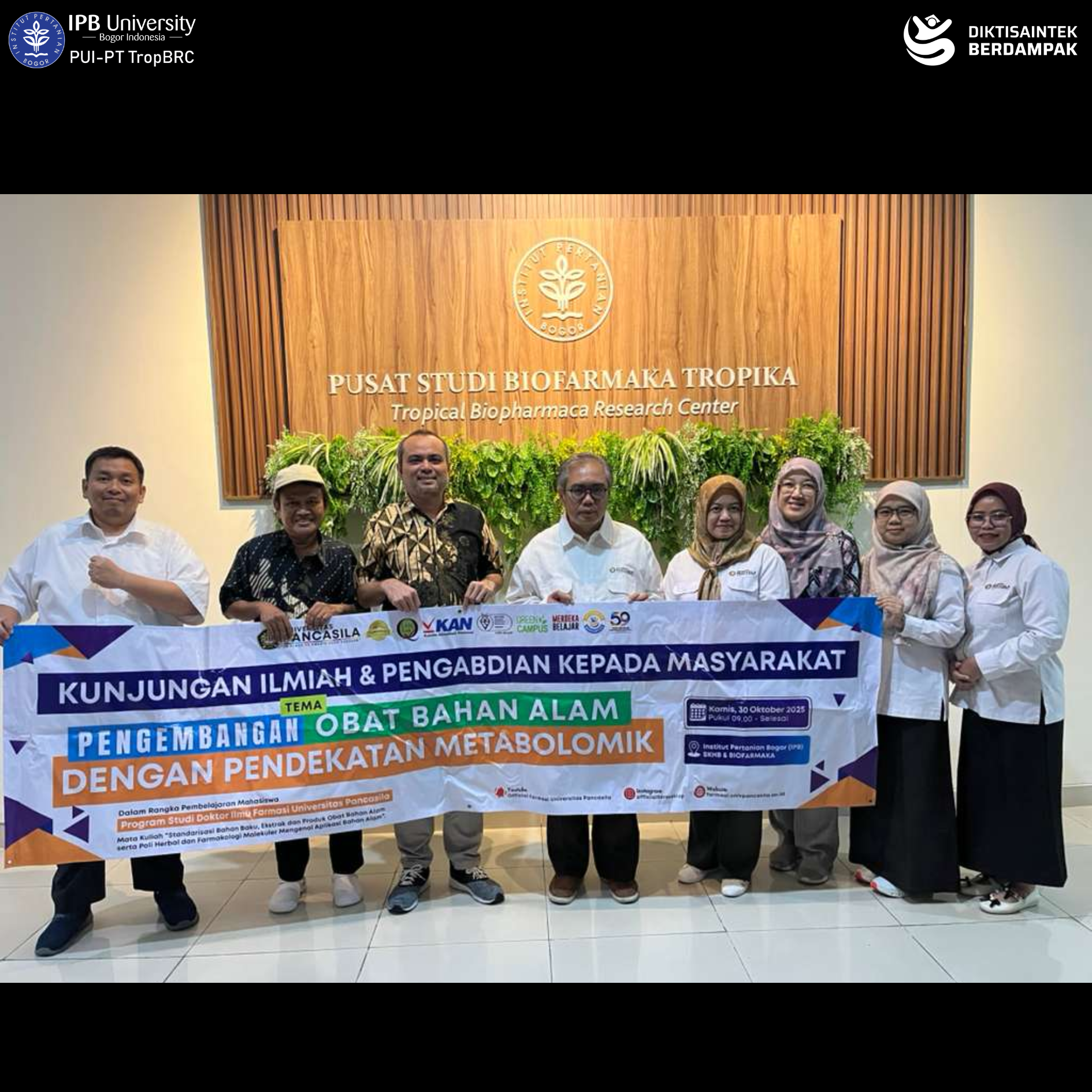 On Thursday, October 30, 2025, the Tropical Biopharmaca Research Center (TropBRC) LRI-PGK IPB University welcomed a visit from lecturers of the Doctoral Program in Pharmaceutical Sciences, Faculty of Pharmacy, Universitas Pancasila. The visiting team was led by Prof. Dr.rer.nat., apt. Deni Rahmat, M.Si., Head of the Doctoral Program in Pharmaceutical Sciences, Faculty of Pharmacy, Universitas Pancasila.